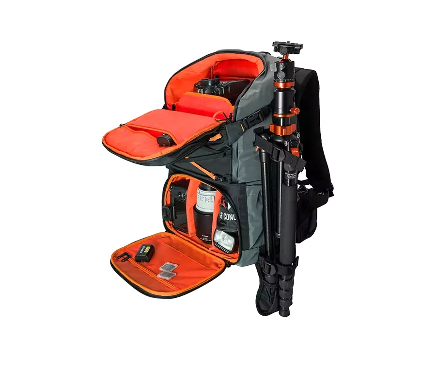 یکی از ویژگیهای برجسته این کیف قابلیت نصب سهپایه است که به شما امکان میدهد سهپایه خود را به راحتی حمل کنید. این کیف همچنین قادر است یک لپتاپ تا سایز 17 اینچ و یک تبلت 11 اینچی را در خود جای دهد، بنابراین برای کسانی که نیاز به حمل ابزارهای دیجیتال در کنار تجهیزات عکاسی دارند، انتخاب مناسبی است. این کیف با ویژگیهای متنوع و گنجایش مناسب، به شما این امکان را میدهد که تمامی لوازم خود را بهطور منظم و ایمن در کنار هم قرار دهید.
