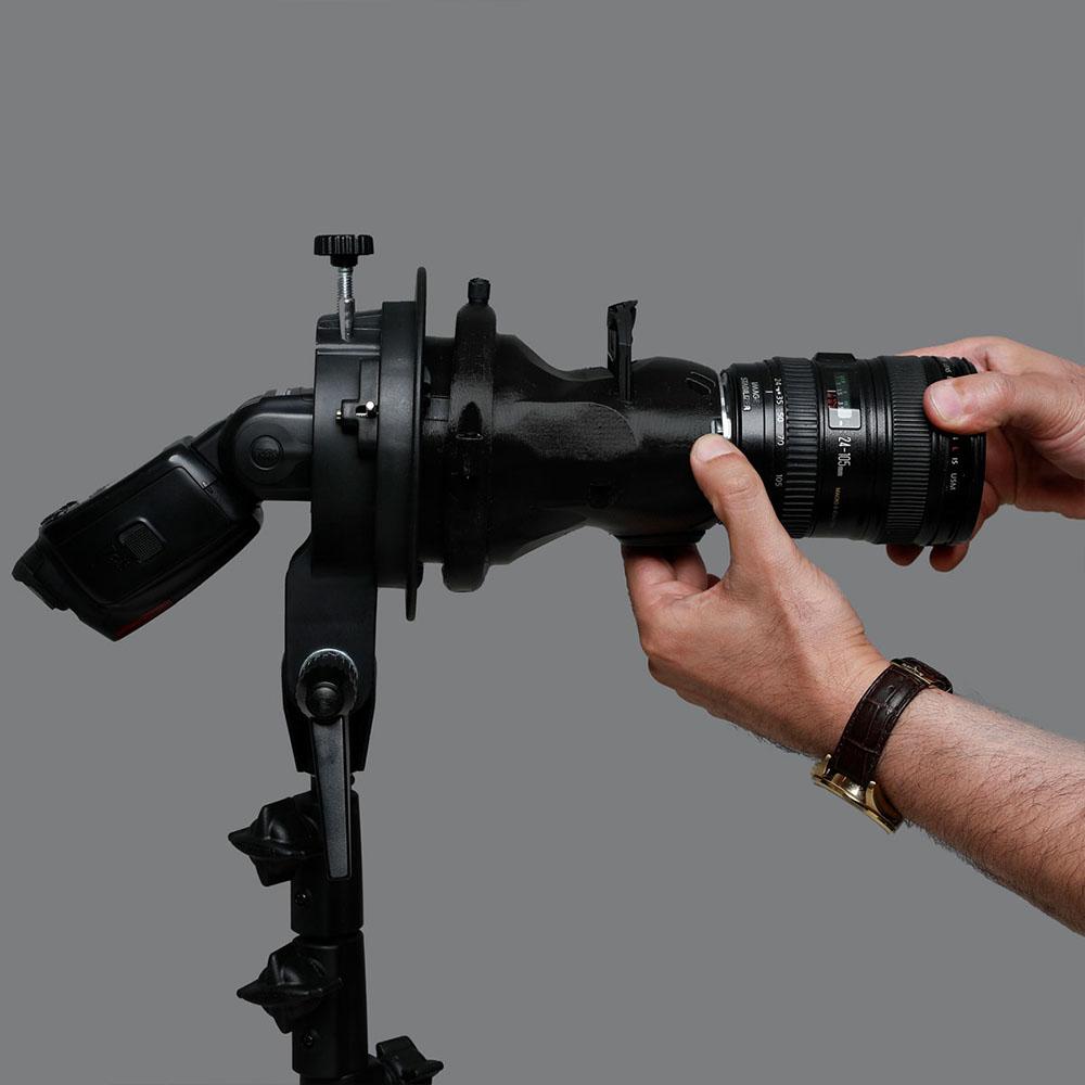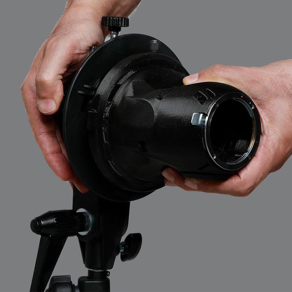 | برای استفاده از لایت بلاستر باید آن را از یک طرف به یک فلاش استودیویی یا اکسترنال وصل کرد و از طرف دیگر به یک لنز کانن. البته میتوان از طریق تبدیل هایی لنز های نیکون را نیز به آن متصل کرد. لایت بلاستر میتواند توسط یک براکت با فلاش اکسترنال کار کند و بدون هیچ تبدیلی به فلاش استودیویی وصل میشود. براکت میتواند تصویر شما را در جهت های افقی و عمودی بدون نیاز به چرخاندن فلاش، بچرخاند. | ![]() |