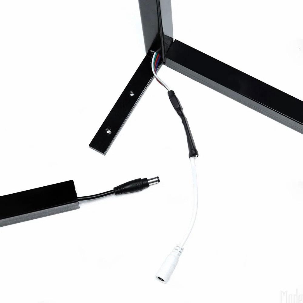 ارتفاع لامپ ال ای دی هوشمند کرنرلایت LED Corner Light حدود 125 سانتیمتر است و طول هر پایه آن 30 سانتیمتر میباشد. قطر بدنه 2.5 سانتیمتر است و سیم برق آن هم حدوداً 2 متر طول دارد.