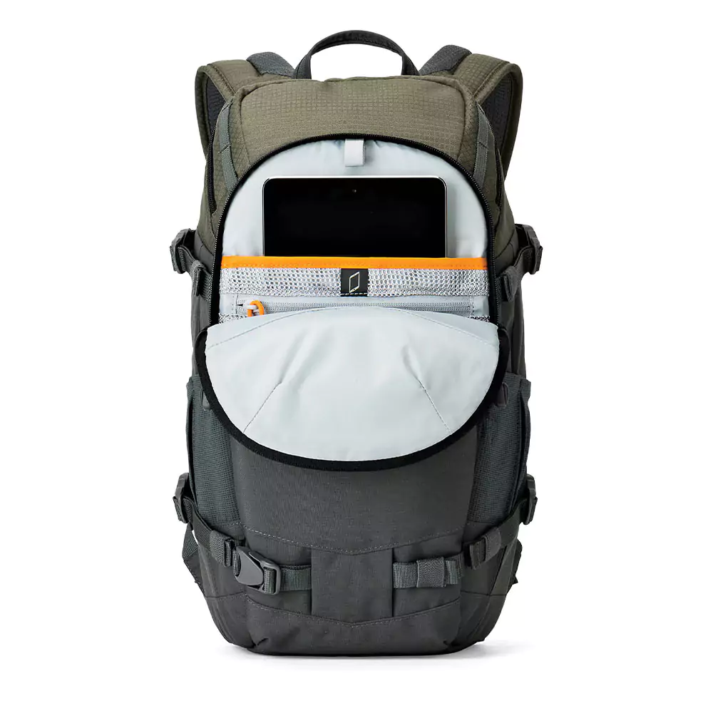 بند کمری این کیف نیز از دیگر نقاط قوت آن است. این بند به توزیع وزن کمک کرده و راحتی بیشتری را در هنگام حمل فراهم میآورد. با توجه به طراحی مقاوم در برابر شرایط آبوهوایی مختلف، این کولهپشتی گزینهای مناسب برای عکاسان طبیعت و سفرهای ماجراجویانه است.