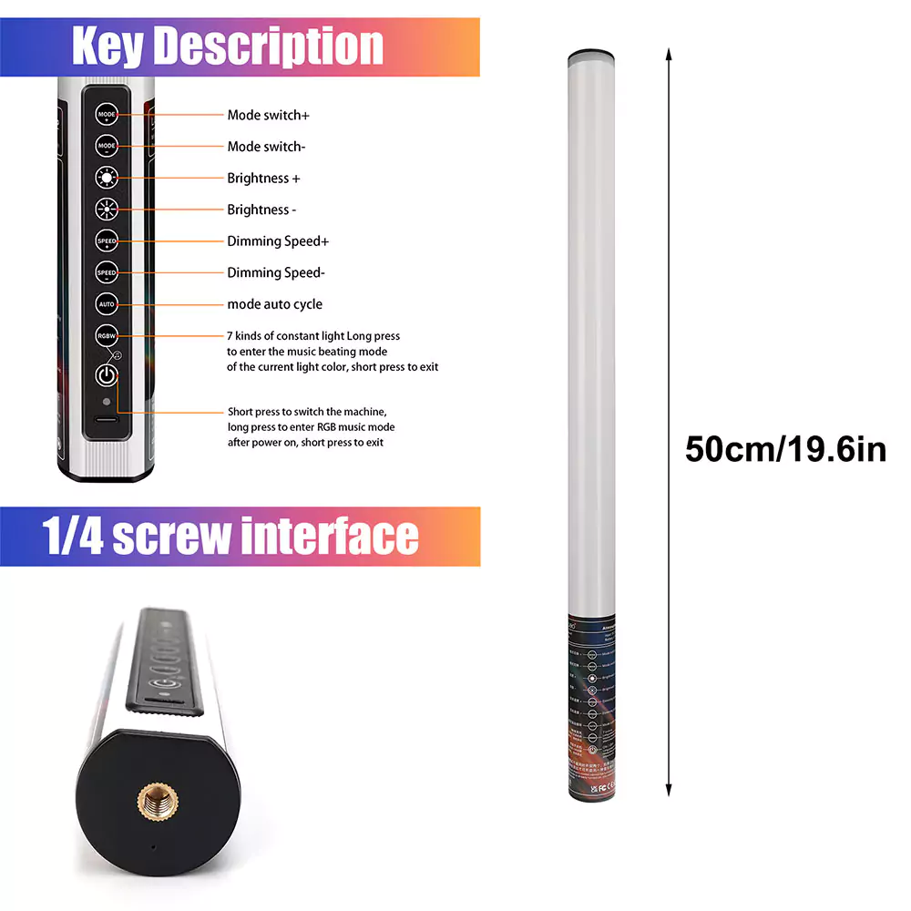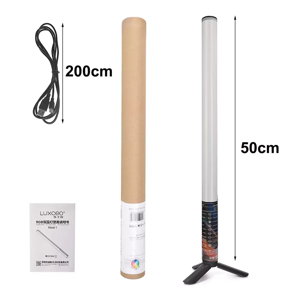 نور باتومی لوکسئو LUXCEO RGB MOOD-50CM یکی از تجهیزات نورپردازی حرفهای با ویژگیهای منحصر به فرد است که به دلیل قابلیتهای گسترده و طراحی جذاب خود، میتواند در پروژههای مختلف هنری، فیلمبرداری، عکاسی، و حتی دکوراسیون استفاده شود.