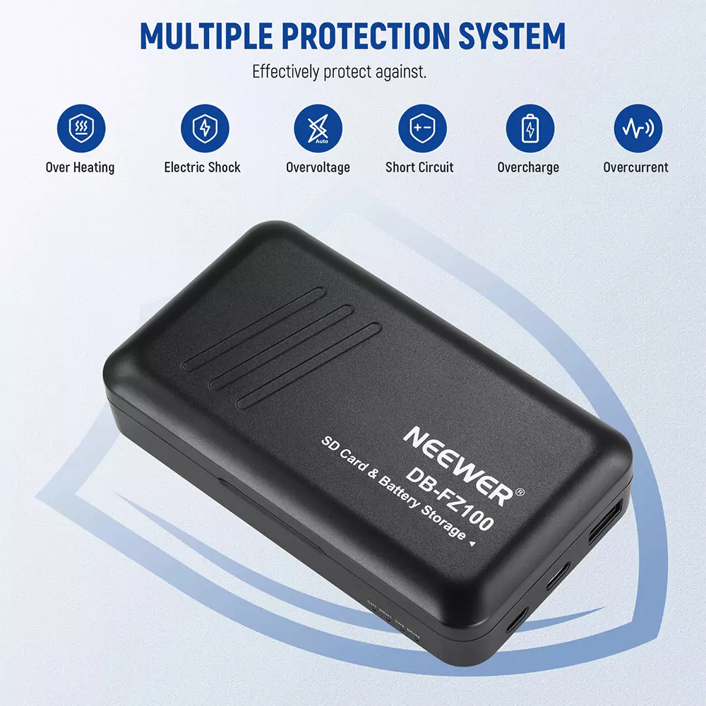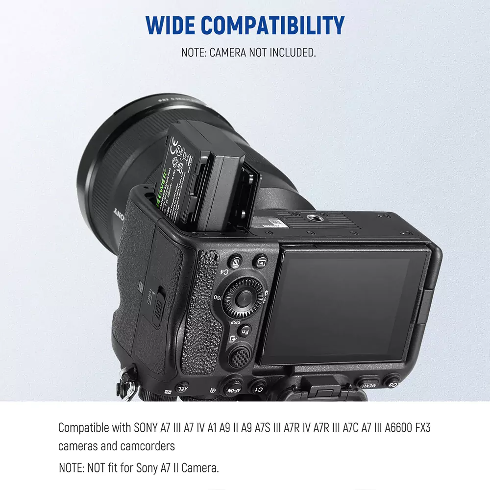 باتری نیور + کیس شارژ NEEWER DB-FZ100 یک انتخاب ایدهآل برای عکاسان، وبلاگنویسان و فیلمسازانی است.این کیت با دوربینهای حرفهای سونی مانند A1، A9، A9 II، A7R III، A7R IV، A7R V، A7S III، A7 III، A7 IV، A6600، A7C و دوربینهای VG-C3EM و VG-C4EM سازگار است.
