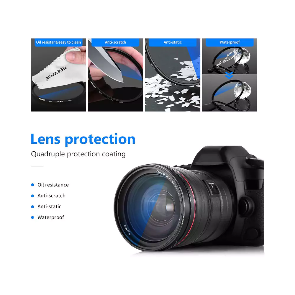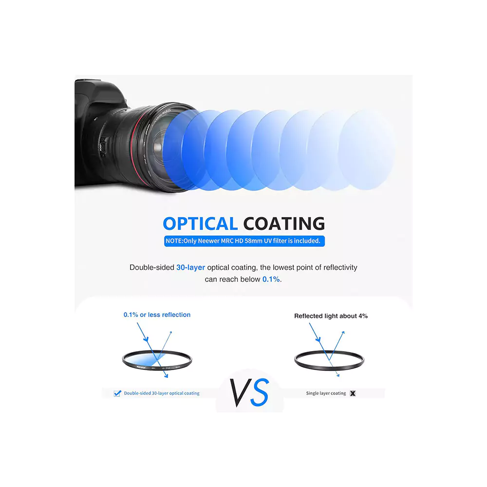 فیلتر لنز 58mm نیور دارای چندین عملکرد و مزیت است که در عکاسی به کار میآید: