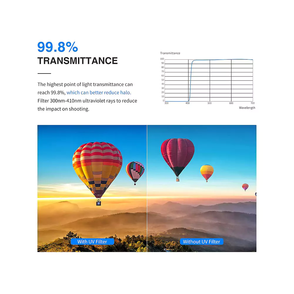 بدنهی آلومینیومی فیلتر به علاوهی طراحی دقیق، وزن سبکی دارد و در عین حال بسیار مقاوم است. این فیلتر به راحتی بر روی لنز پیچ میشود و به دلیل کیفیت ساخت بالا، از لغزش یا آسیب دیدن در حین استفاده جلوگیری میکند.