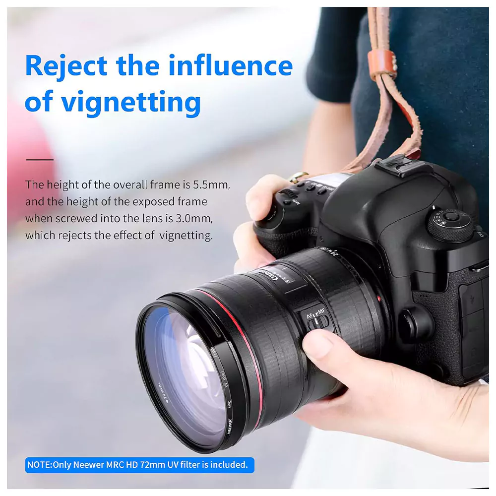 فیلتر نیوور برای عکاسی به ویژه عکاسی پرتره و لنزهایی که دهانه 72 میلیمتر دارند مناسب است. برای مثال ، لنز Canon EF 50mm f/1.2L USM برای عکاسی پرتره و تصاویر شفاف طراحی شده و به فیلترهای ضد تابش نیاز دارد. برخی از مدلهای معروف لنزهای سازگار شامل مورد زیر است: