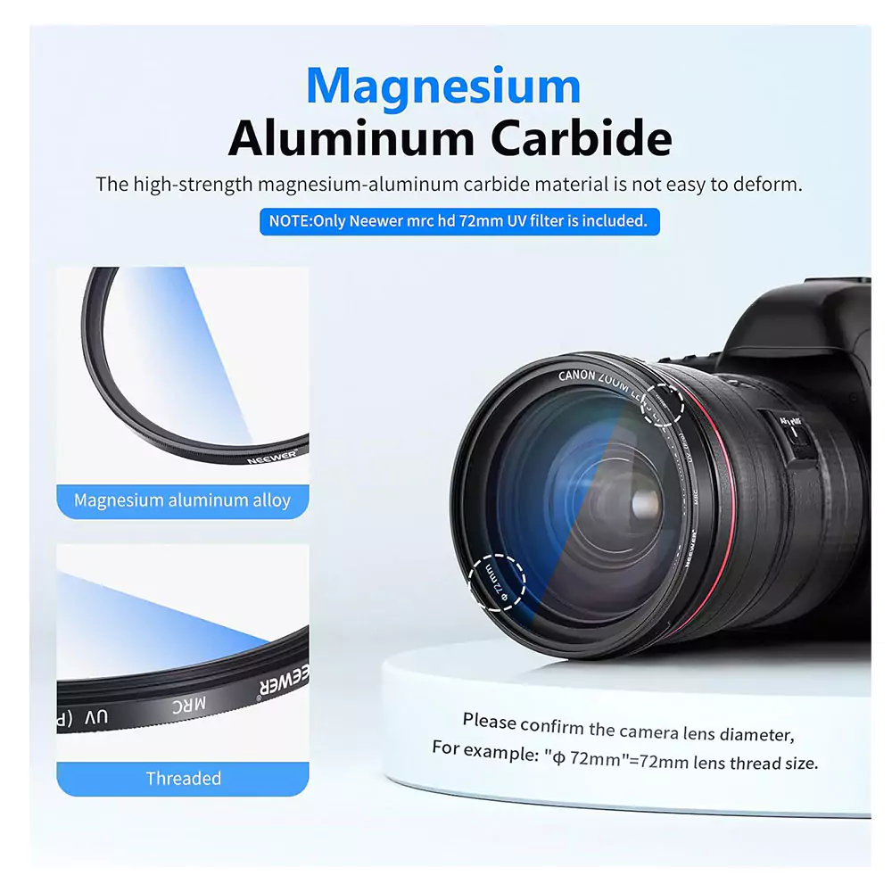 اگر به دنبال یک فیلتر حفاظتی با کیفیت و قابل اعتماد هستید، این فیلتر انتخاب خوبی است. اما اگر قیمت فیلتر لنز Neewer UV 72mm با بودجه شما سازگار نبود، ممکن است بهتر باشد فیلترهای برندهای معروفتر را در نظر بگیرید.