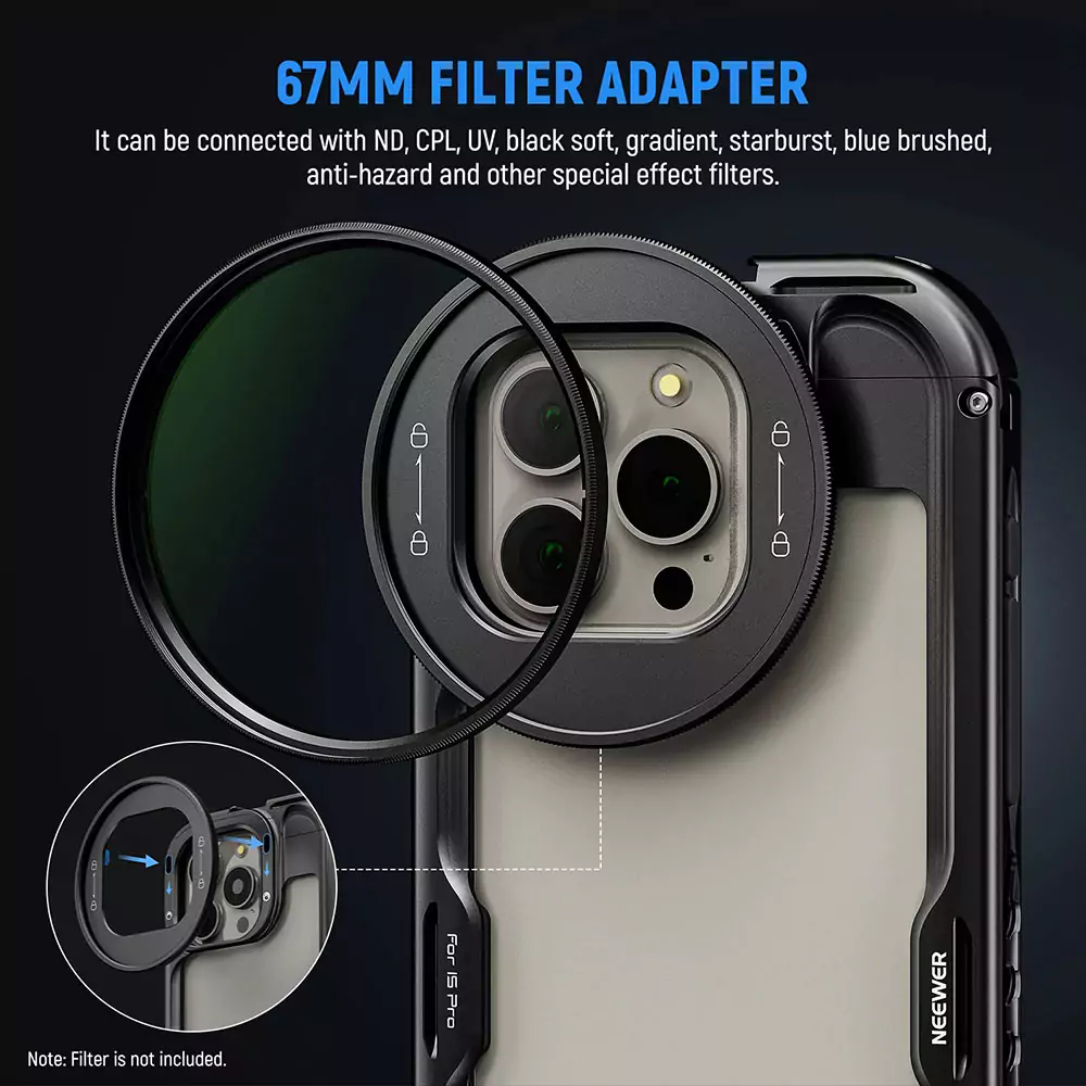%10.8کیج و ریگ موبایل Neewer PA044 برای iPhone 15 Pro یکی از بهترین تجهیزات عکاسی با موبایل برای ارتقاء تجربه عکاسی و فیلمبرداری است. این کیج موبایلی به طور خاص برای iPhone 15 Pro طراحی شده است.