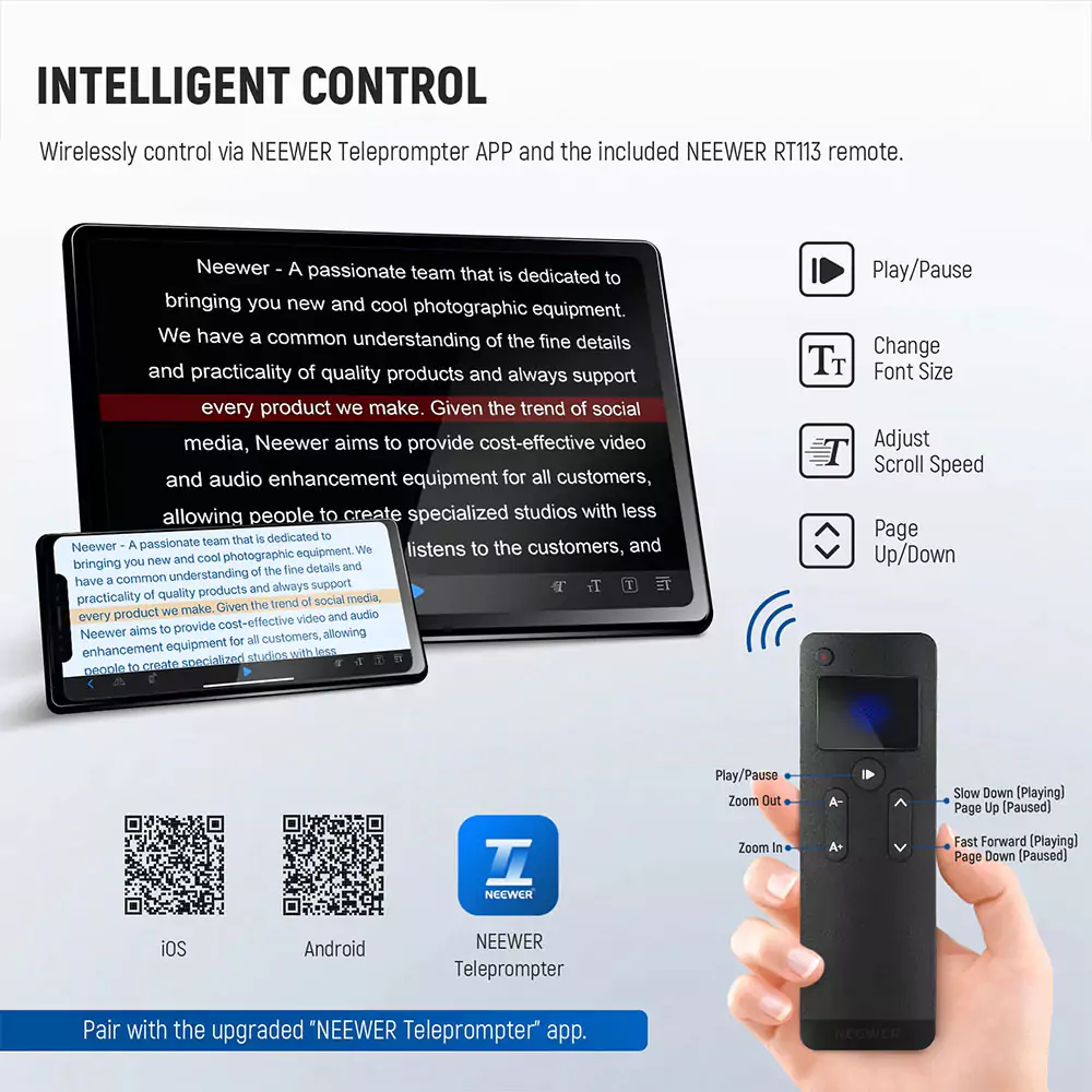 تله پرامپتر نیور NEEWER X17 II یک ابزار حرفهای برای اجرای سخنرانیها، مصاحبهها، یا تولید محتوا است که به طور ویژه برای افراد حرفهای در صنعت رسانه، تلویزیون و تولید ویدئو طراحی شده است. این تله پرامپتر دارای صفحه نمایش ۱۷ اینچی است که به راحتی میتوان متون را با وضوح بالا مشاهده کرد.