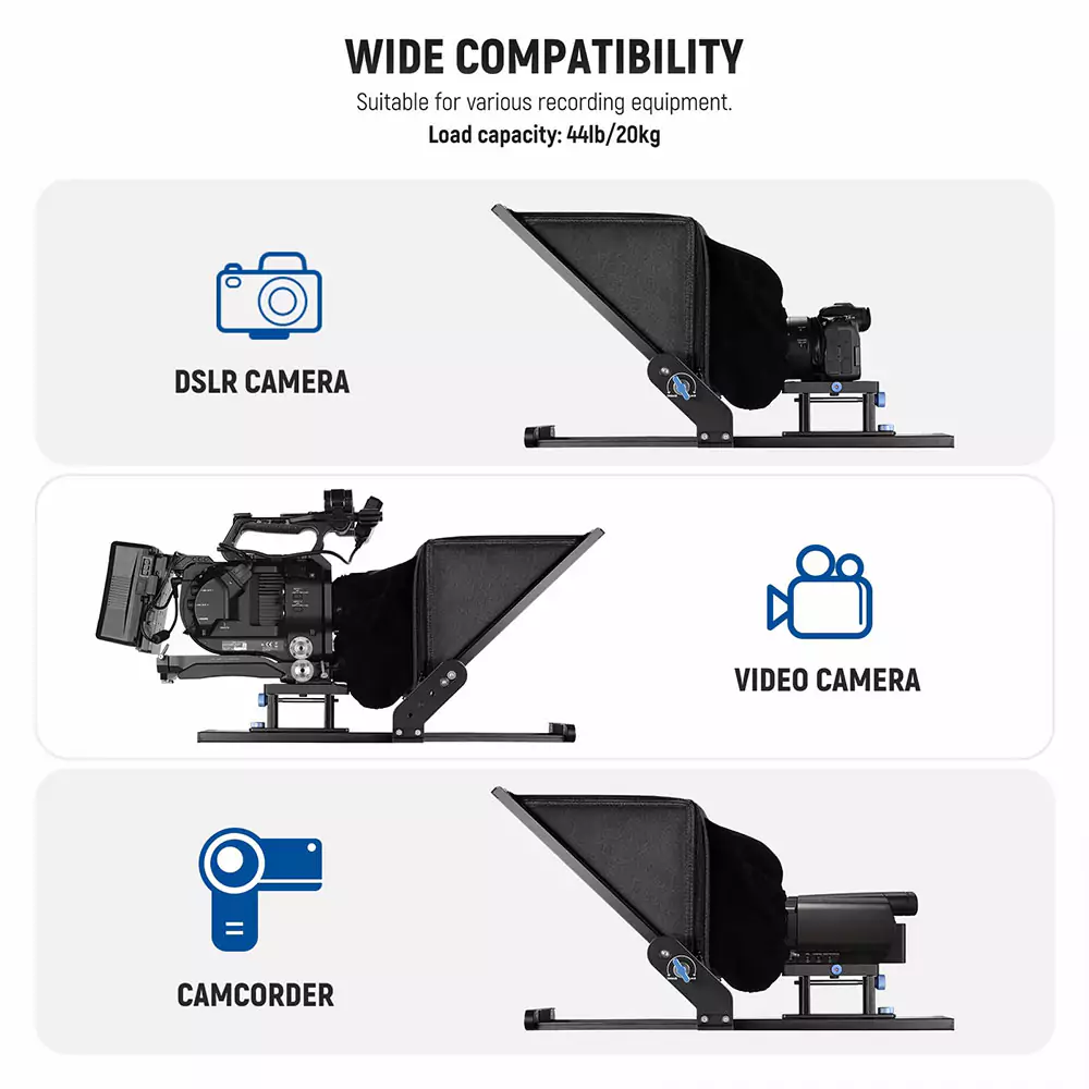 قبل از خرید تله پرامپتر نیور NEEWER X17 II، ابتدا باید بررسی کنید که آیا این دستگاه با نوع دوربین، تجهیزات تولید محتوا و لوازم عکاسی و فیلمبرداری شما سازگار است یا خیر. همچنین توجه کنید که فضای کاری شما به اندازه کافی برای نصب و استفاده از این دستگاه فراهم باشد، زیرا این محصول ممکن است در فضاهای محدود کمی مشکل ایجاد کند.