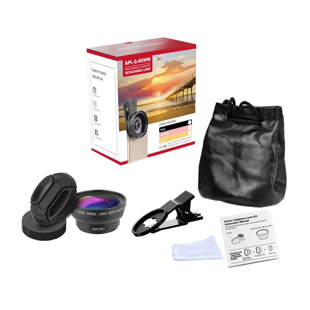 لنز موبایل واید و ماکرو اپکسل Apexel APL-0.45WM به شما امکان میده تا عکسهای وسیع و پانورامیک با کیفیت بالا (واید) و عکسهای نزدیک و دقیق از جزئیات (ماکرو) را به راحتی بگیرید.