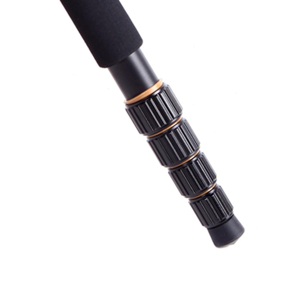 سه پایهی خیلی خوبیه. ابعاد مناسبی داره موقع جمع شدن که بسیار مناسب مسافرت هست. ارتفاع ایدهآلی برای بنده داره. از لحاظ کیفیت ساخت با سهپایههای گرونتر از خودش برابری میکنه. همراه سه پایه یک کیسهی ضربهگیر دار خوشگل با طرح پیکسلی نظامی برای نگه داری سه پایه و یه کیسهی افزایش وزن و یه نگهدارندهی مونوپاد برای اتصال به کمربند هم بود. رنگ قسمت رنگی سه پایه هم مسی متمایل به طلاییه.