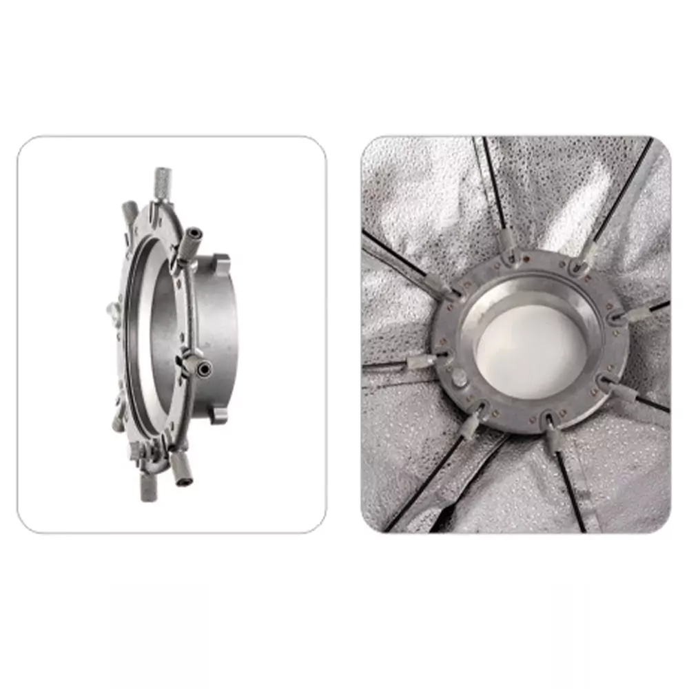 این شکل دهنده های نور با فلاشها و نورهای LED سازگار بوده و نور خروجی بسیار نرم و یکنواختی را ارائه میدهد. پوشش برزنتی دو لایه مشکی-نقرهای آن علاوه بر بهبود بازتاب نور، مقاومت بالایی در برابر حرارت ایجاد میکند که باعث دوام بیشتر تجهیزات میشود. همچنین این سافت باکس از اتصال سهخار استاندارد بهره میبرد که آن را با اکثر فلاشهای استودیویی سازگار میکند.