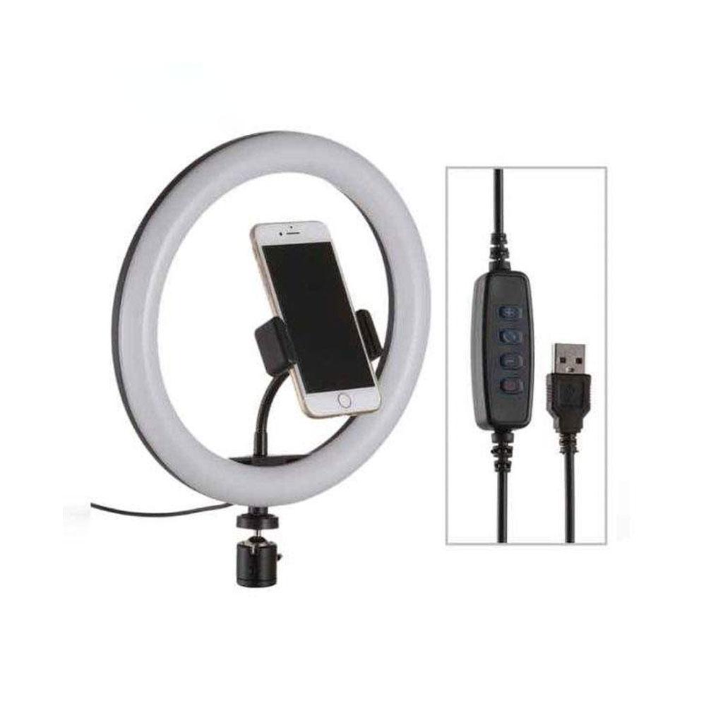 ابعاد این رینگ لایت برابر 26 × 26 × 38 سانتیمتر و قطر خارجی حلقه آن 26 سانتیمتر است. وزن کل این محصول نیز 200 گرم میباشد. سیم این محصول به یک رابط USB مجهز شده است. شما میتوانید به کمک این رابط، نیروی رینگ لایت را به وسیله همه دستگاههایی که پورت USB دارند از جمله پاوربانک، لپتاپ، کامپیوتر، شارژر USB و آداپتور AC تامین نمایید. در نتیجه نگرانی بابت شارژدهی در موقعیتهای مختلف نخواهید داشت. روی این سیم چهار دکمه قرار دارد، که برای روشن/خاموش کردن و تنظیم روشنایی و طیف رنگی مورد استفاده قرار میگیرند. گستره رنگی و تنظیم شدت نور شرایط را برای عکاسی خلاقانه فراهم میکند.