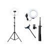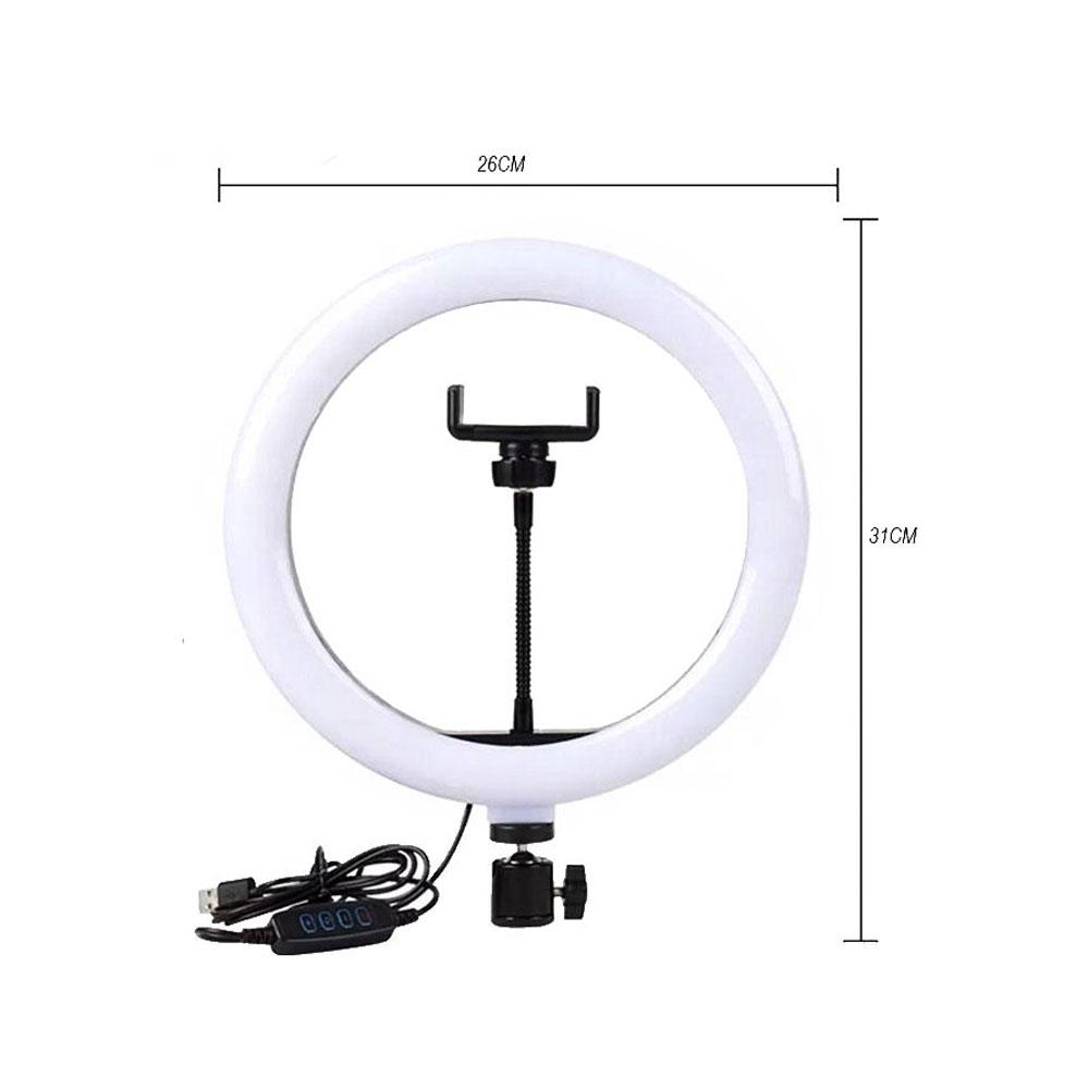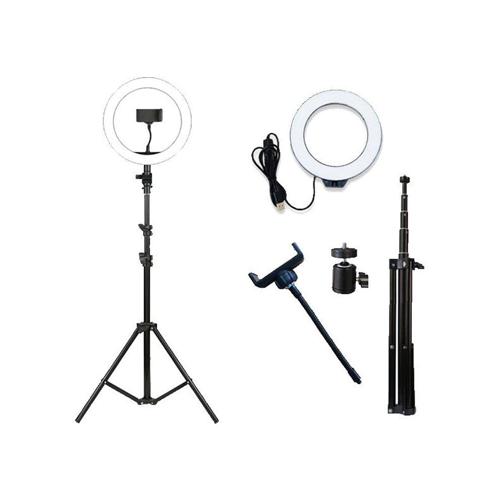 آرایشگران و بلاگرها از این وسیله نهایت بهره را میبرند. رینگ لایت وسیلهای بسیار کاربردی است که با خصوصیاتش تجربهای دلنشین از نورپردازی را برای شما رقم خواهد زد. این رینگ لایت در قطر 26 سانتیمتری طراحی شده و پایه آن از انعطاف بالایی برخوردار است. شدت نور و دمای رنگی این دستگاه قابل تنظیم است و نور آن نیز به سلامت چشم آسیبی نمیرساند. یک ریموت کنترل نیز در نظر گرفته شده است تا سهولت کار با این رینگ لایت به اوج خود برسد. شاید حرفهایترین رینگ لایت موجود نباشد ولی همه این خصوصیات با قیمتی مناسب عرضه میگردد، که خود این مسئله یک مزیت استثنایی محسوب میشود.