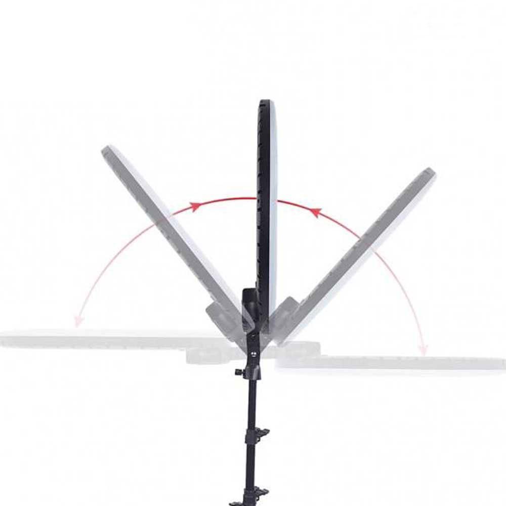 امکان نصب بر روی سه پایه از دیگر ویژگیهای این رینگ لایت است که زاویه قرار گرفتن لامپ بر روی سه پایه قابل تنظیم است و این قابلیت اجازه میدهد که لامپ در یک بازه 180 درجهای امکان تنظیم داشته باشد. (90 درجه به جلو و 90 درجه به عقب) و در حول محور عمودی لامپ حلقوی میتواند بر روی پایه به صورت 360 درچه چرخش داشته باشد.