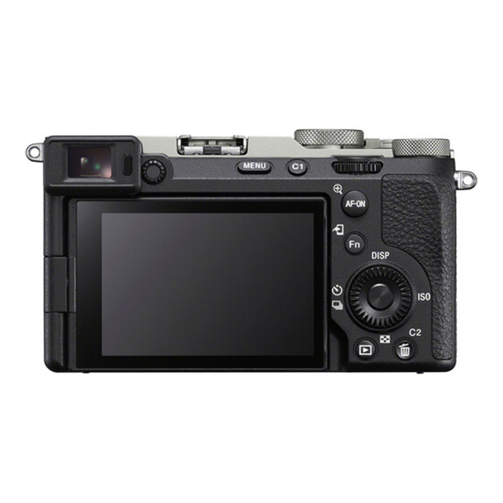 sony a7c ii silver ابعادی معادل 124 در 71.1 در 63.4 میلیمتر دارد. یک دوربین سبک وزن است و به همراه باتری و کارت حافظه 514 گرم وزن دارد. جنس بدنه هم مطابق معمول آلیاژ منیزیوم است. از فلاش داخلی برخوردار نیست، اما میکروفون داخلی 2-channel 16-bit 48kHz دارد. ویوفایندر 0.39 اینچی و تاچ اسکرین با قابلیت چرخش 3 اینچی دارد.