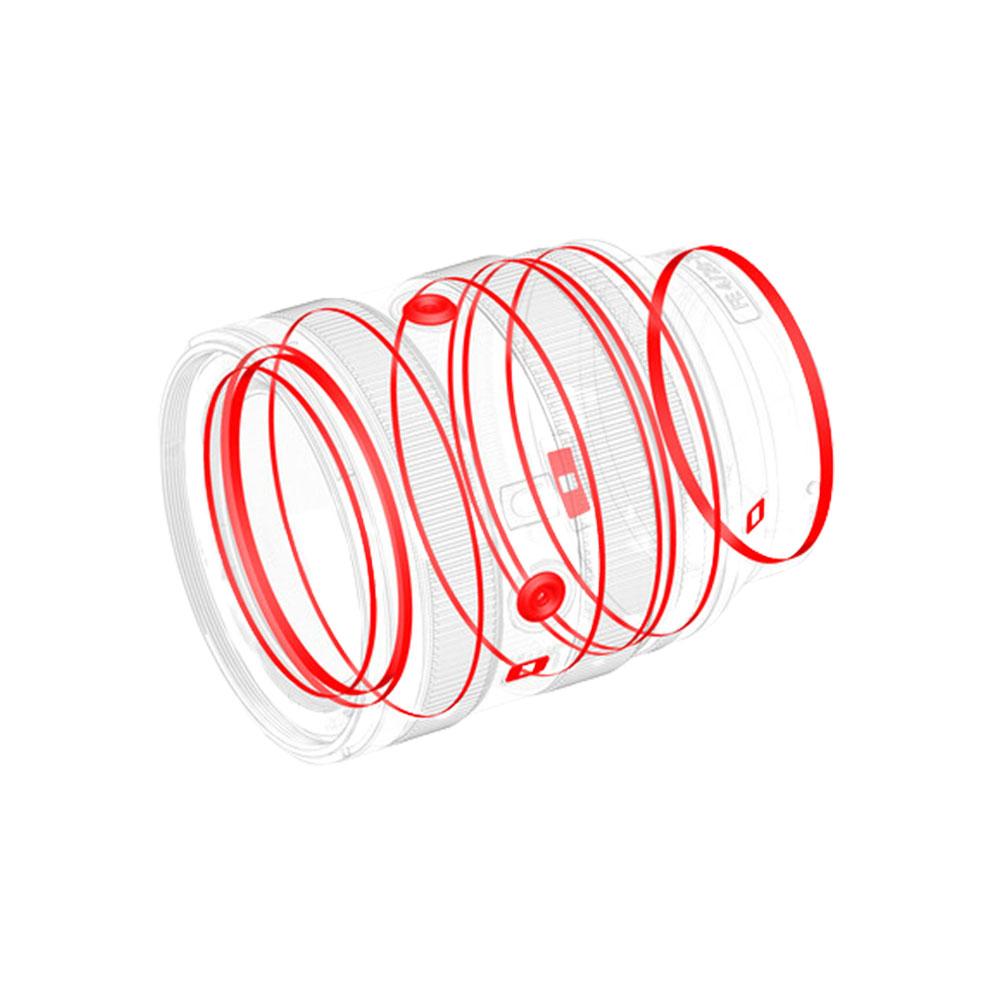 قسمت جلویی این لنز با پوشش فلوئور پوشانده شده که آب، گرد و غبار، اثر انگشت و سایر آلودگیها را دفع میکند. این پوشش تمیز کردن جلوی لنز را هم آسانتر کرده است. از طرفی یک حلقه لاستیک برای آببندی پایه یا مانت لنز به کار گرفته شده تا بتوان از آن در شرایط آب و هوایی نامساعد نیز استفاده کرد. بنابراین به طوری ساخته شده که در برابر ورود رطوبت و گرد و خاک به ساختار لنز، مقاوم باشد.
