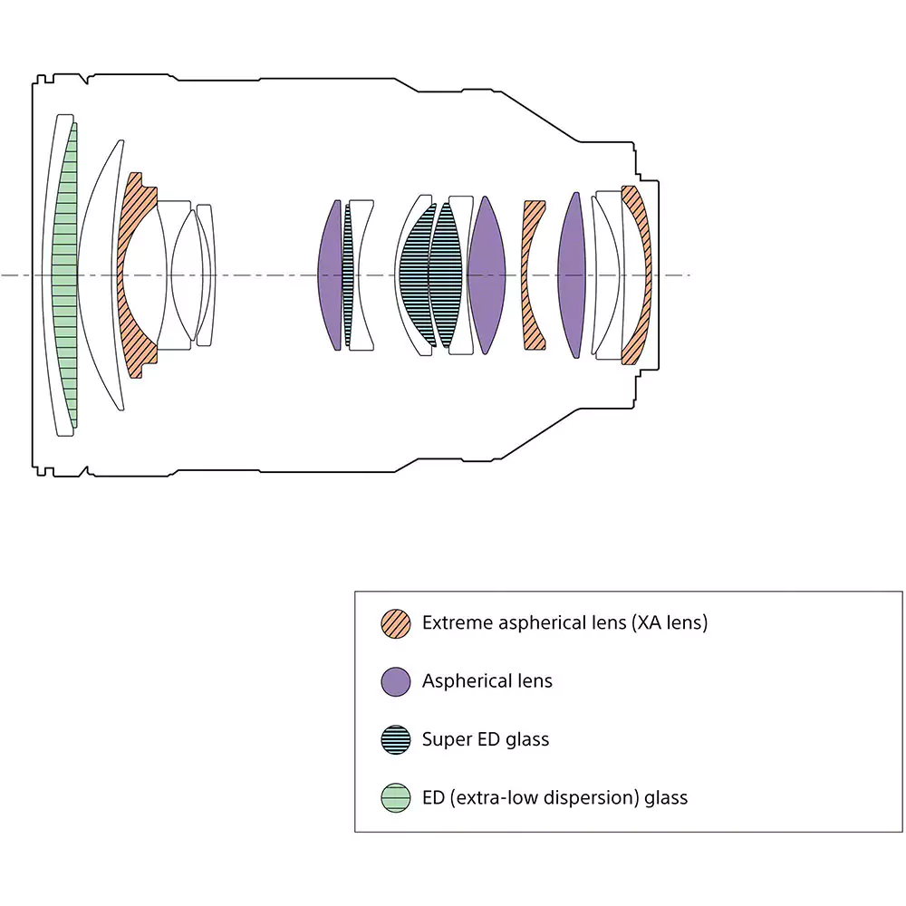 لنز سونی Sony FE 28-70mm f/2 GM Lens For Sony E یک لنز زوم با دیافراگم ثابت f/2 است که برای دوربینهای سونی با مانت E طراحی شده است. این لنز سونی از ساختار اپتیکی پیچیدهای با 20 عنصر در 14 گروه تشکیل شده است که شامل سه عنصر اسفریکال، سه عنصر Super ED، و یک عنصر ED میباشد. این ترکیب اپتیکی به کاهش انحرافات رنگی و افزایش وضوح تصویر در تمامی فواصل کانونی کمک میکند. همچنین، استفاده از یک دیافراگم 11 تیغهای گرد موجب تولید بوکههای نرم و زیبا در پسزمینه میشود. طراحی فشرده و سبک با وزن تنها 918 گرم، آن را برای استفاده طولانیمدت و جابجایی آسان مناسب میسازد.