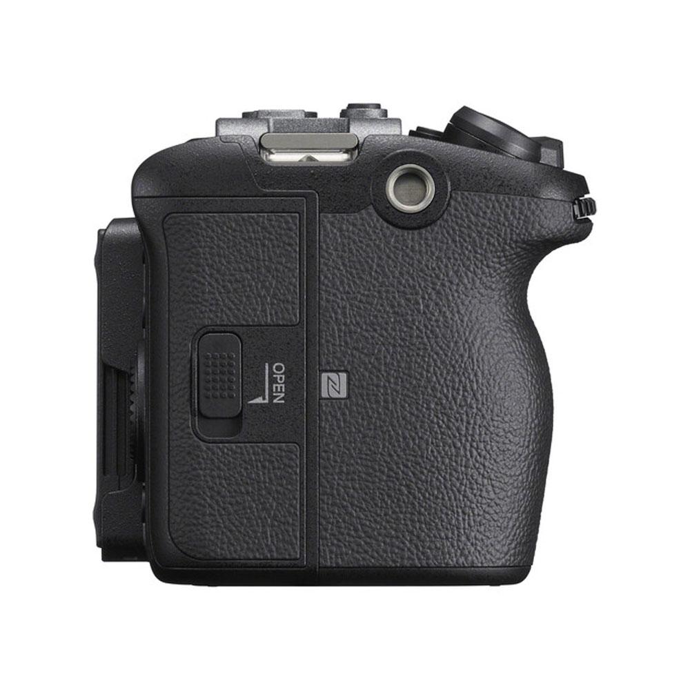 وقتی از روبرو به دوربین نگاه میکنیم یک دایال کنترل، یک دکمه با ویژگی خصوصیسازی (6)، 2 چراغ نشانگر، اهرم زوم و طبیعتا جایگاه لنز در کنار نام تجاری آلفا α به چشممان میرسد. قسمت پشتی مطابق معمول شاهد چندین دکمه هستیم و خب صفحۀ نمایش لمسی 3 اینچی را هم همانجا میبینیم.