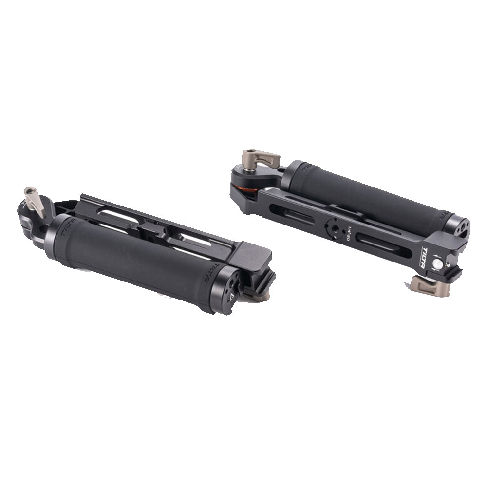 طراحی دو دسته برای کنترل بهتر: کنترل گیمبال با یک دست میتواند پس از مدتی باعث خستگی و لرزش دست شود. این براکت با داشتن دو دسته، امکان گرفتن گیمبال با هر دو دست را فراهم میکند. این به معنای توزیع وزن بهتر، کنترل دقیقتر حرکات و قابلیت کار طولانیمدت بدون خستگی است.