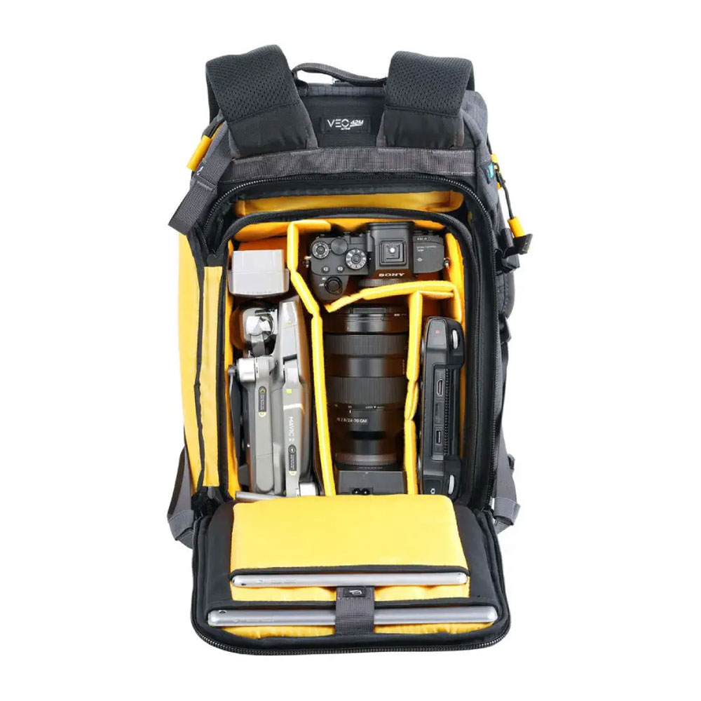 کوله پشتی دوربین ونگارد VEO ACTIVE 42M GY برای جابهجایی دوربینهای DSLR و دوربینهای بدون آینه طراحی شده است. محفظه حمل دوربین این کوله پشتی دارای قابلیت جداسازی بوده و امکان قرار دادن تبلت و لپتاپ نیز به طور همزمان در آن امکانپذیر میباشد. به طور کلی میتوان چنین بیان کرد که کوله پشتی دوربین ونگارد VEO ACTIVE 42M GY دارای ظرفیت حمل دو دوربین DSLR، 6 لنز، یک لپ تاپ نهایتا 15 اینچی و یک فلاش دوربین به شکل همزمان میباشد. برای این کوله پشتی امکان دسترسی از جلو، پشت و بالای کیف در نظر گرفته شده است. در ضمن محفظههایی برای قرارگیری سه پایه یا بطری آب در کنارههای کوله پشتی قرار داشته و یک پورت اتصال شارژر USB داخلی نیز در آن تعبیه شده است.