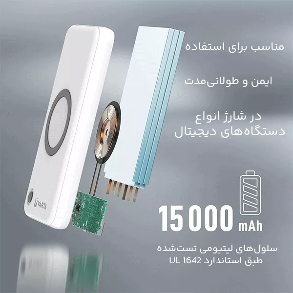 پاوربانک وایرلس فست شارژ وارتا ظرفیت 15000 میلی آمپر