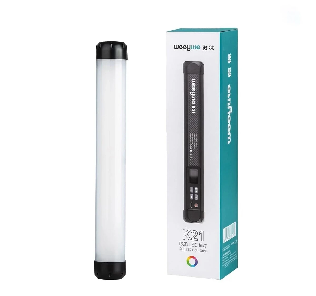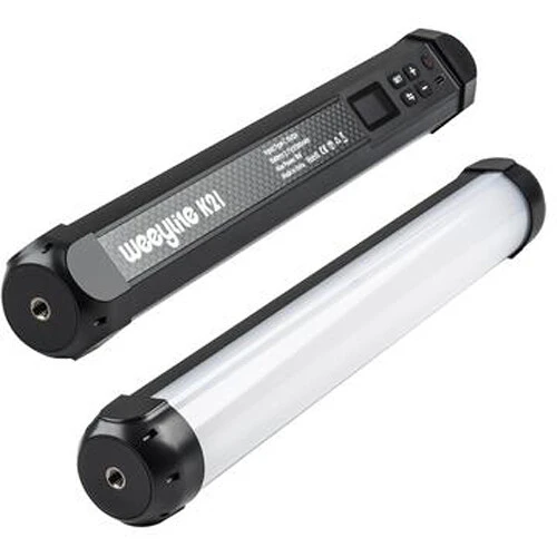 Weeylite K21 از نوع چراغهای الایدی RGB فولکالر است که دمای رنگی متغیر بین 2500 تا 8500 کلوین را پوشش میدهد، یعنی از نور گرم گرفته تا سرد، همه را با دقت بالا ارائه میدهد. شاخص CRI برابر با 95 و TLCI معادل 97 نشان میدهد که رنگها با دقتی بسیار بالا بازتولید میشوند؛ ویژگیای حیاتی برای عکاسی حرفهای. طول این نور باتومی دقیقاً 30.48 سانتیمتر (12 اینچ) و وزن آن تنها 270 گرم است که حمل و استفاده از آن را آسان میکند. با بهرهمندی از 29 افکت نوری داخلی و یک باتری لیتیوم یونی قابل شارژ با یک ساعت عملکرد در روشنایی کامل، K21 یک ابزار همهکاره در نورپردازی به شمار میرود.