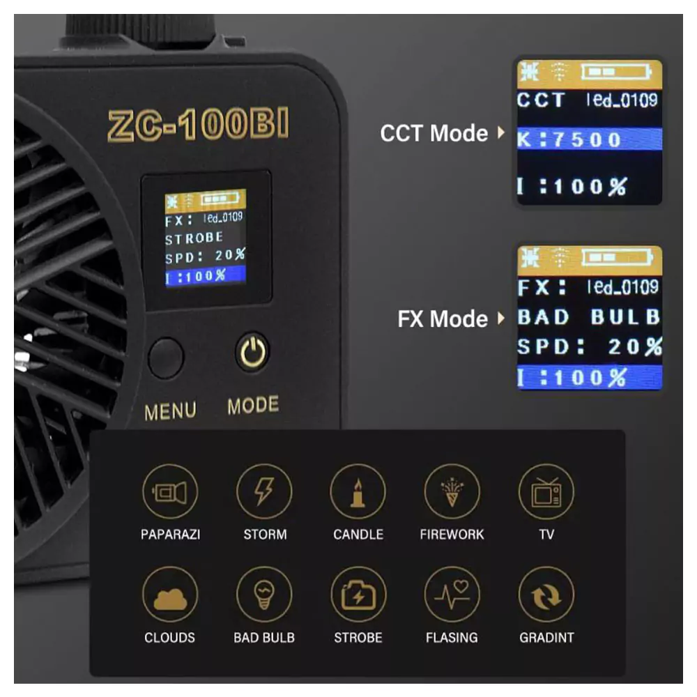 ویدئو لایت ایدوبلو Yidoblo ZC-100BI با توان 100 وات و خروجی حداکثر 30000 لومن، گزینهای ایدهآل برای استودیوها و فضای باز است. شاخص بازتاب رنگ (CRI) این محصول برابر با 95 بوده که موجب بازتولید دقیق و طبیعی رنگها میشود. دمای رنگ بین 2700K تا 7500K قابل تنظیم است که امکان انتخاب نور گرم یا سرد را فراهم میکند.