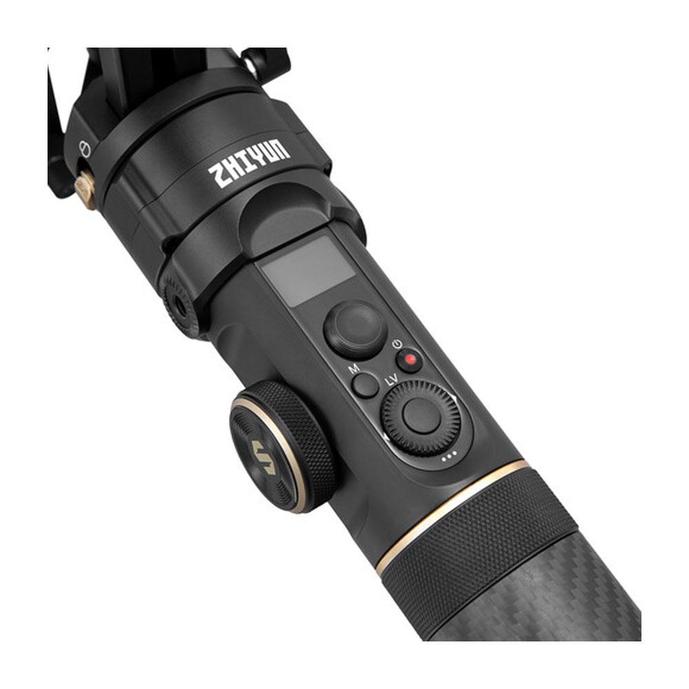 دسته این گیمبال ، از فیبر کربن ساخته شده است تا علاوه بر جانسخت بودن و ارائه عملکردی مطمئن، وزن زیادی را بر فیلمبرداران تحمیل نکند و با این حال بتواند ظرفیت بار بالایی داشته باشد. در جلوی ژیون کرین 2S ، یک صفحه نمایش 0.96” OLED قرار گرفته است که با اندازه بزرگش، نظارت و کنترل صحنه را آسان میکند.